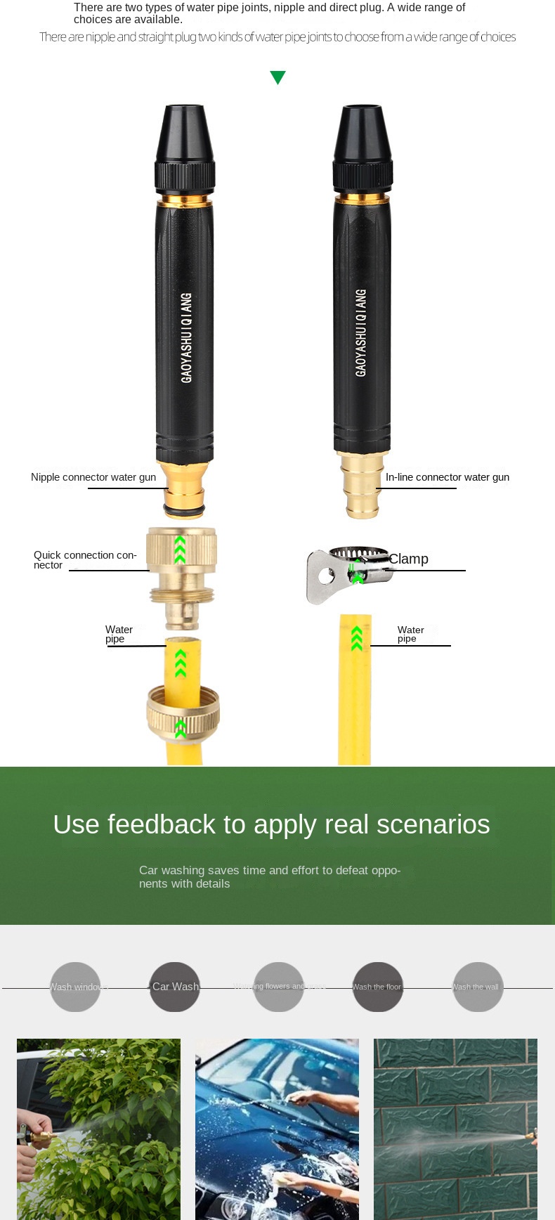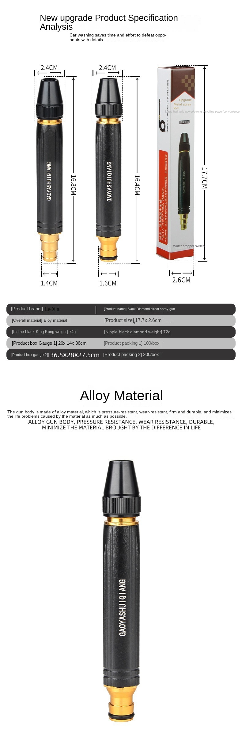 Pistola de água de alta pressão para lavagem de carro doméstica, bico preto para lavagem de carro, tubo de rega de diamante, pistola de lavagem de carro