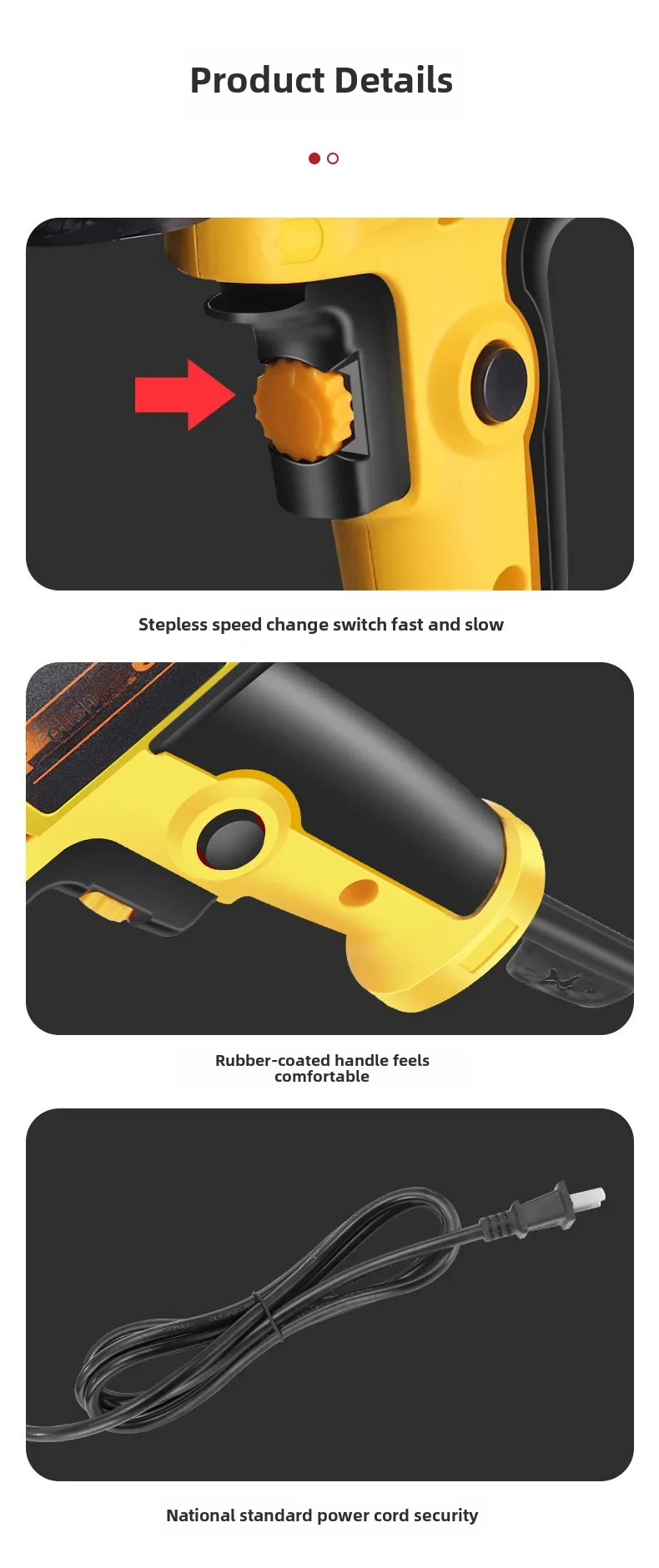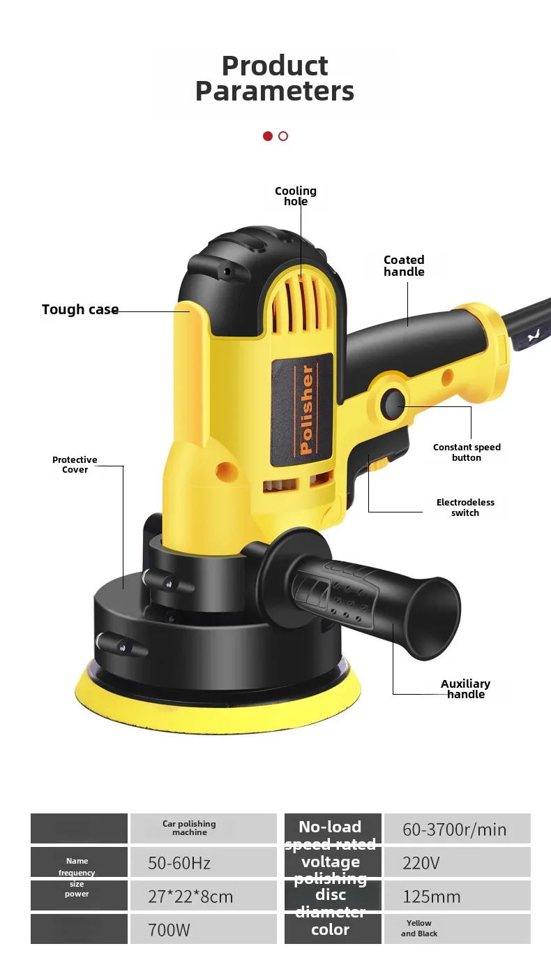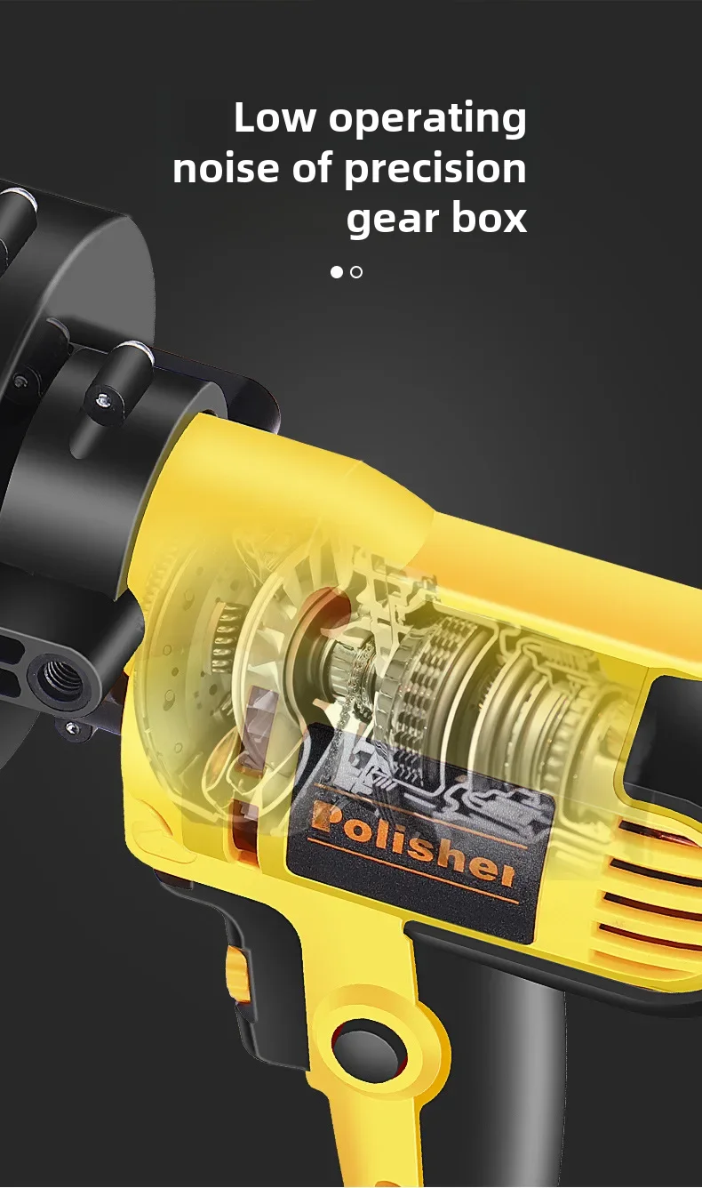 • Polidora profissional de carros: Esta máquina é uma polidora de carros de nível profissional, projetada para fornecer resultados de alta qualidade com facilidade e eficiência. É perfeita para encerar, lixar, consertar arranhões e selar embelezadores de carros.